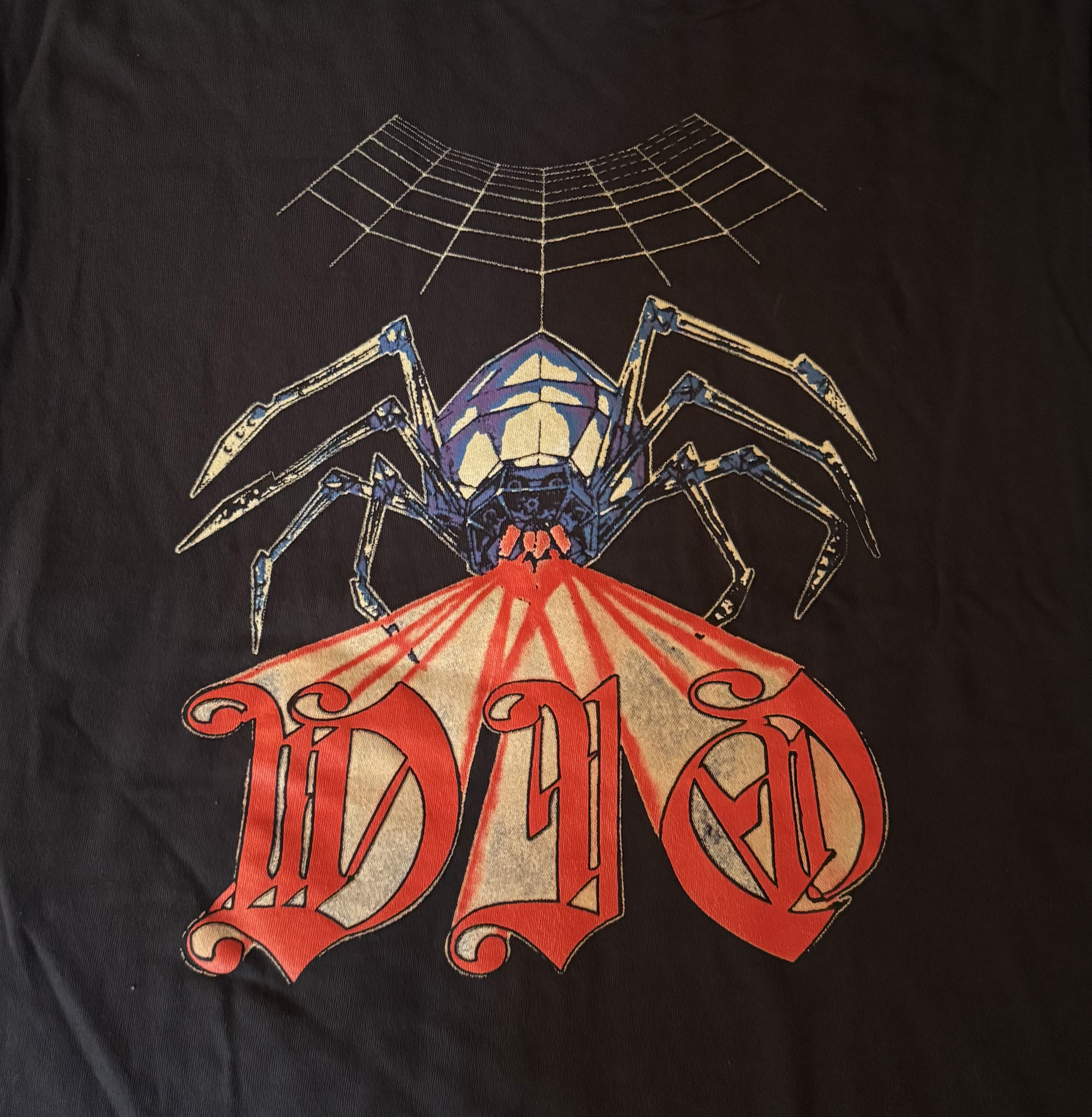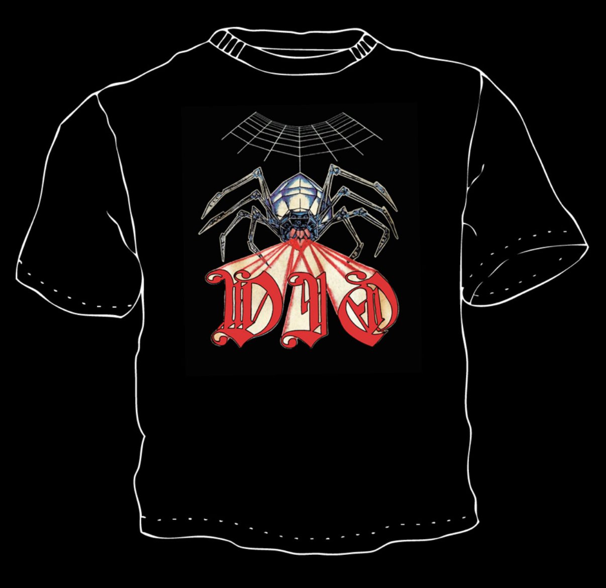 DIO crew only design from the dream evil tour in the 80s. representing the giant practical effect spider that came down from the rafters! A rare design recreated and printed on comfort colors.